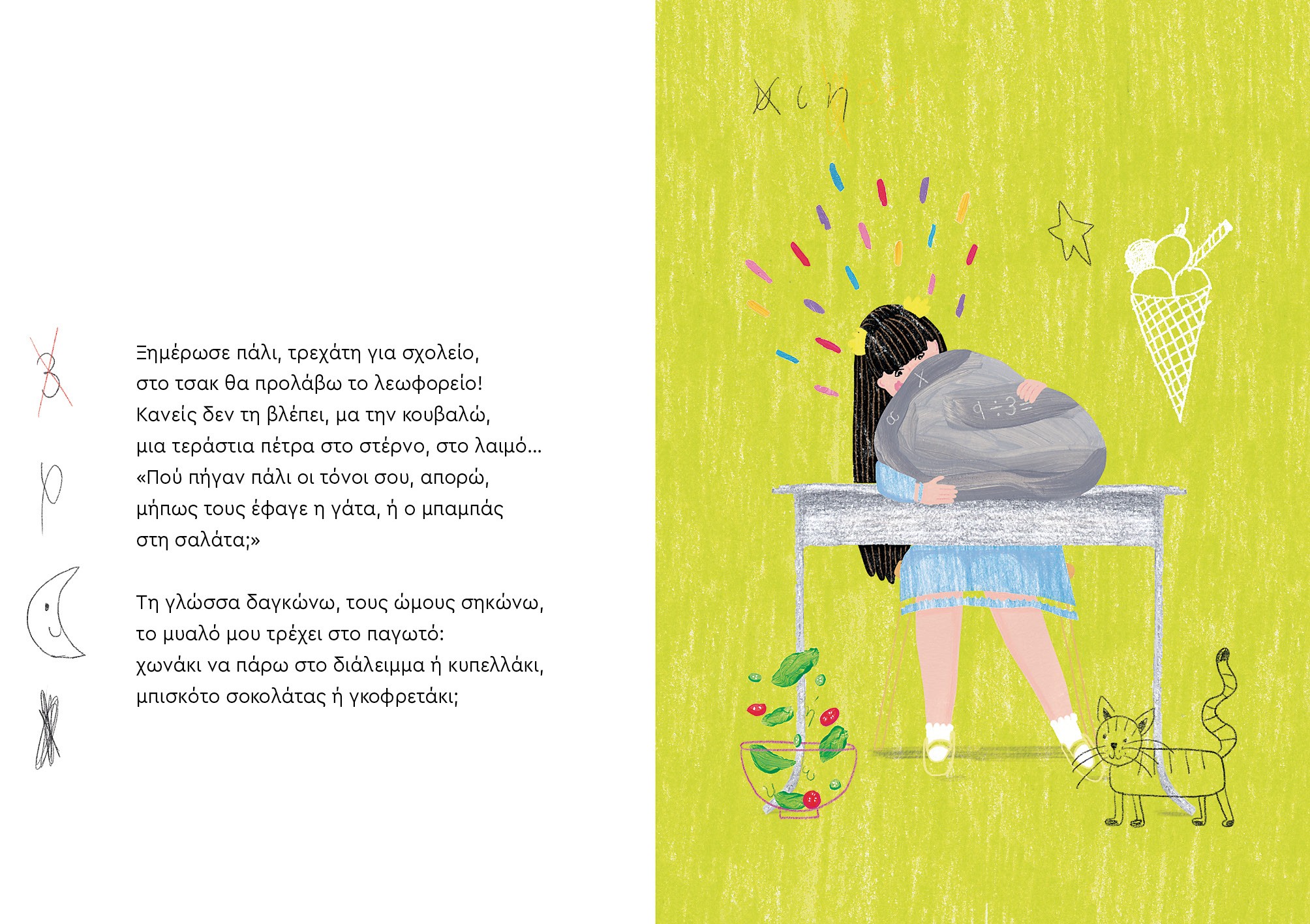 «Το θυμάμαι καθαρά, ήμουν ένα πολύ χαρούμενο κορίτσι, μέχρι που πήγα στην πρώτη τάξη. Εκεί κατάλαβα πως τα πράγματα δεν ήταν και πολύ εντάξει. Πριν με παιδέψει η αλφαβήτα, οι τόνοι και η ορθογραφία, με τον μπαμπά γράφαμε στίχους. Ήμουν πρώτη στις παροιμίες και στο να σκαρφίζομαι συναρπαστικές ιστορίες!