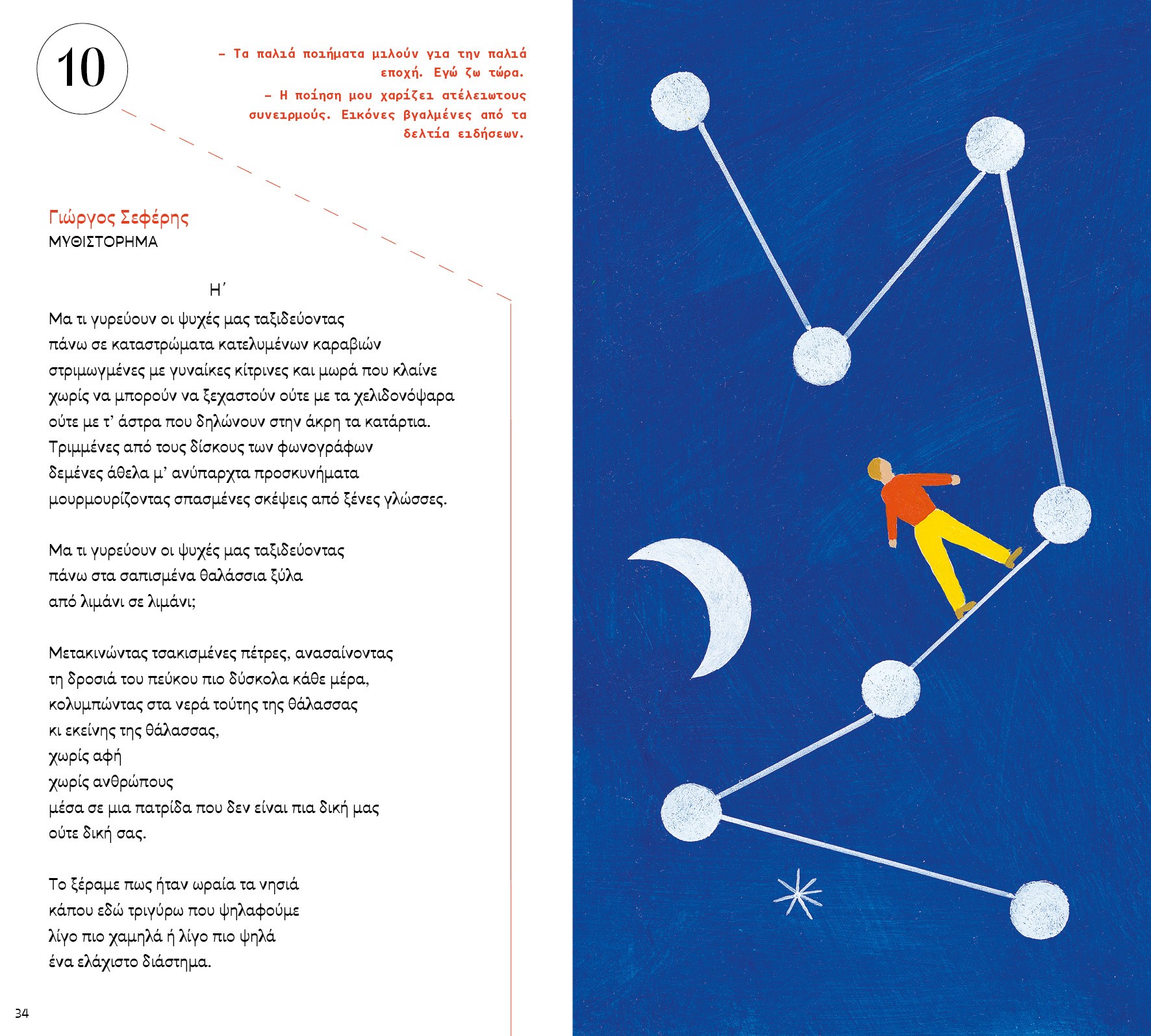 «Όταν αγαπάς πολύ κάτι και θέλεις να το περιγράψεις, χρειάζεται να ισορροπήσεις ανάμεσα στο πάθος και τη λογική για να μπορέσεις να βρεις τις κατάλληλες λέξεις να πεις αυτό που θες. Όταν αυτό που αγαπάς είναι η ποίηση, η ισορροπία γίνεται ακόμη πιο δύσκολη. Ή μήπως πανεύκολη; Αφού κι αν πέσεις, πάντα κάποιο ποίημα θα υπάρχει για να σε πιάσει!»
