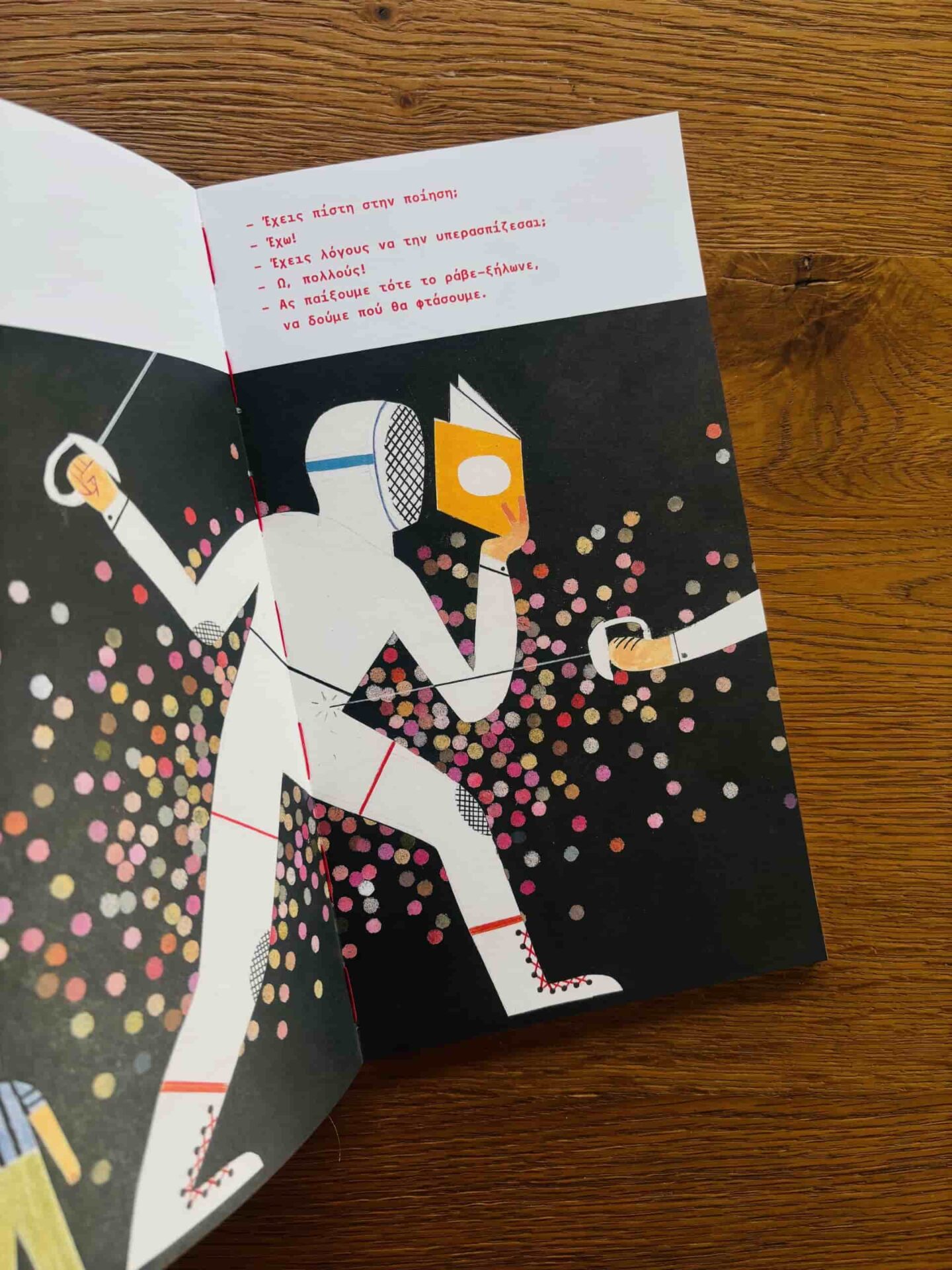 Δεν θα μπορούσα να μην σχολιάσω την ίδια τη μορφή του βιβλίου. Οι εκδόσεις Καλειδοσκόπιο, με την καλλιτεχνική επιμέλεια της Εριφύλης Αράπογλου, με πρόθεση να υπογραμμίσουν την αξία της ελεύθερης βίωσης της ποίησης αλλά και την ομορφιά της διαφορετικής ματιάς έχουν δημιουργήσει ένα αντικείμενο που συνομιλεί ουσιαστικά με το πνεύμα του. Το βιβλίο στερείται ράχης και αφήνει σκόπιμα ορατή την κόκκινη κλωστή που ενώνει τις σελίδες του, μια επιλογή που μοιάζει σαν υλική μεταφορά της δημιουργικής διαδικασίας: ενός διαρκούς «ράβε-ξήλωνε» με τις λέξεις, όπου η ποίηση γεννιέται μέσα από δοκιμές, ανατροπές, νέες ματιές και νέες συνθέσεις.